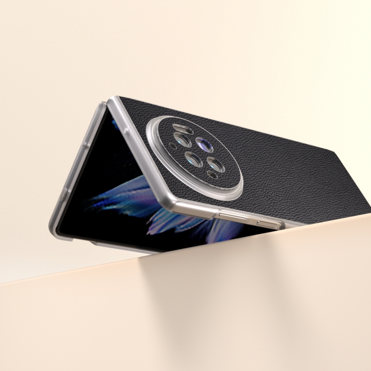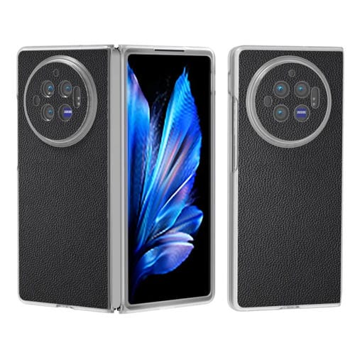 Para Vivo X Fold3 Abeel Funda para Teléfono con Borde Transparente Esmerilado Elegante de Cuero Genuino (Negro)