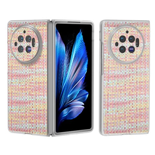Para Vivo X Fold3 Funda para Teléfono de Pu con Marco Translúcido Esmerilado con Textura Rómbica Colorida (Rosa)