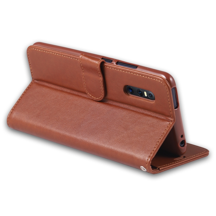 Para Vivo X27 Azns Funda de Cuero con Tapa Horizontal con Textura de Piel de Oveja con Soporte, Ranuras para Tarjetas y Billetera (Marrón)
