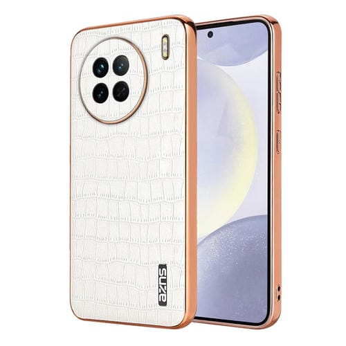 Para Vivo X90 / X90S Azns Estuche para Teléfono de Cobertura Total con Textura de Cocodrilo y Marco Galvanizado (Blanco)