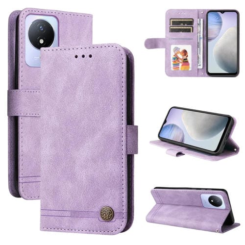 Para Vivo Y02 4G Skin Feel Life Tree Metal Button Funda de Cuero para Teléfono (Púrpura)
