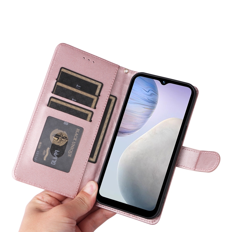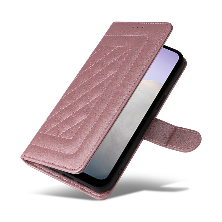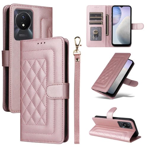 Para Vivo Y02 Diamond Lattice Funda de Cuero para Teléfono con Tapa (Oro Rosa)