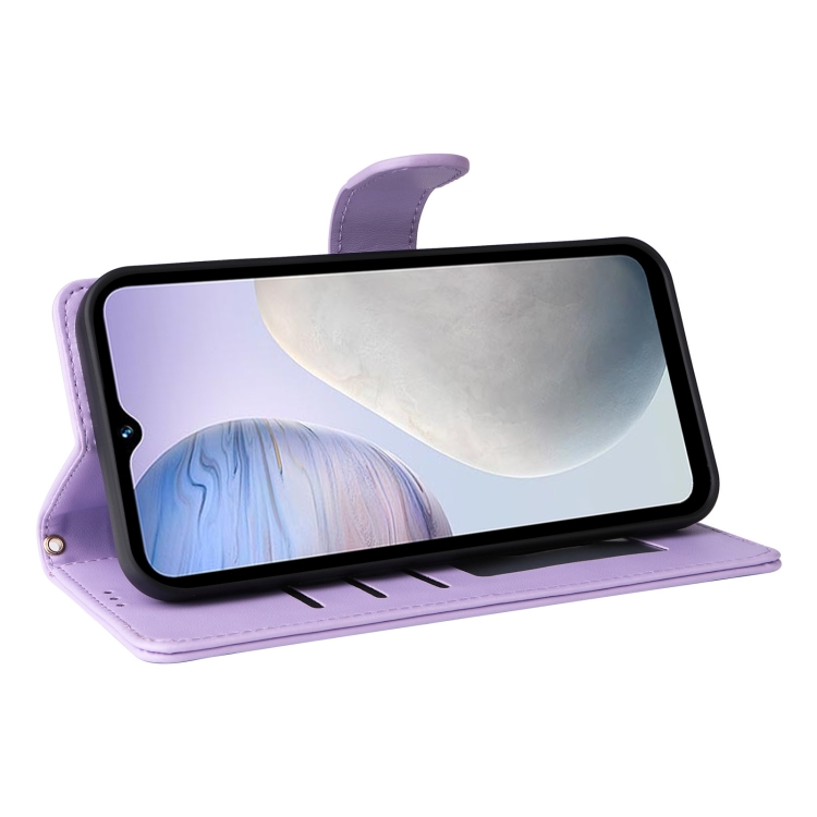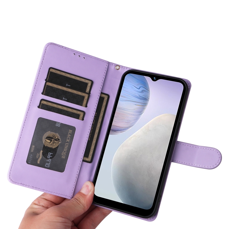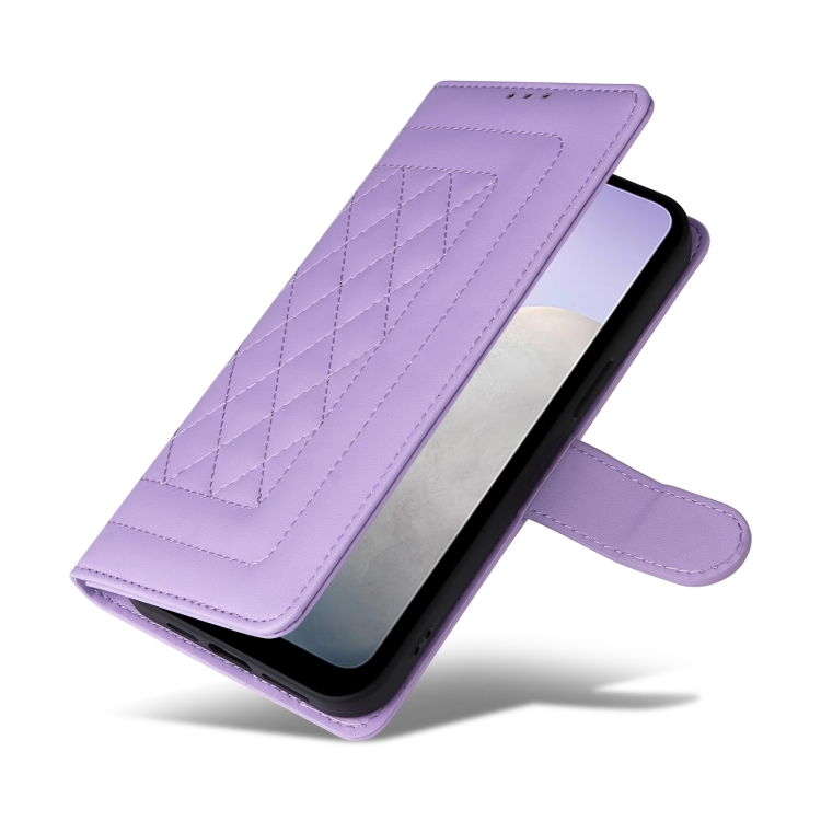 Para Vivo Y02 Diamond Lattice Funda de Cuero para Teléfono con Tapa (Púrpura Claro)