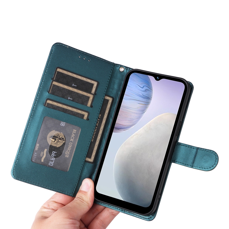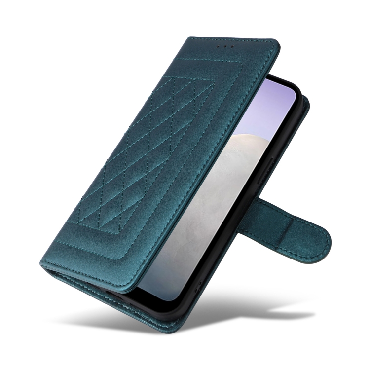 Para Vivo Y02 Diamond Lattice Funda de Cuero para Teléfono con Tapa (Verde)