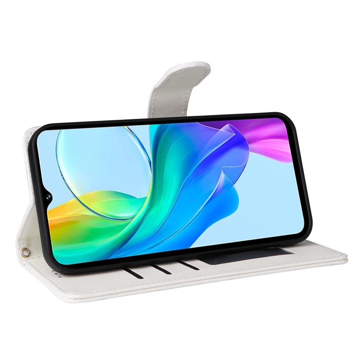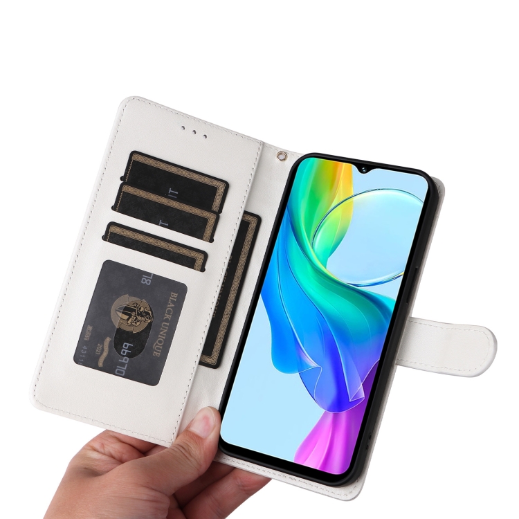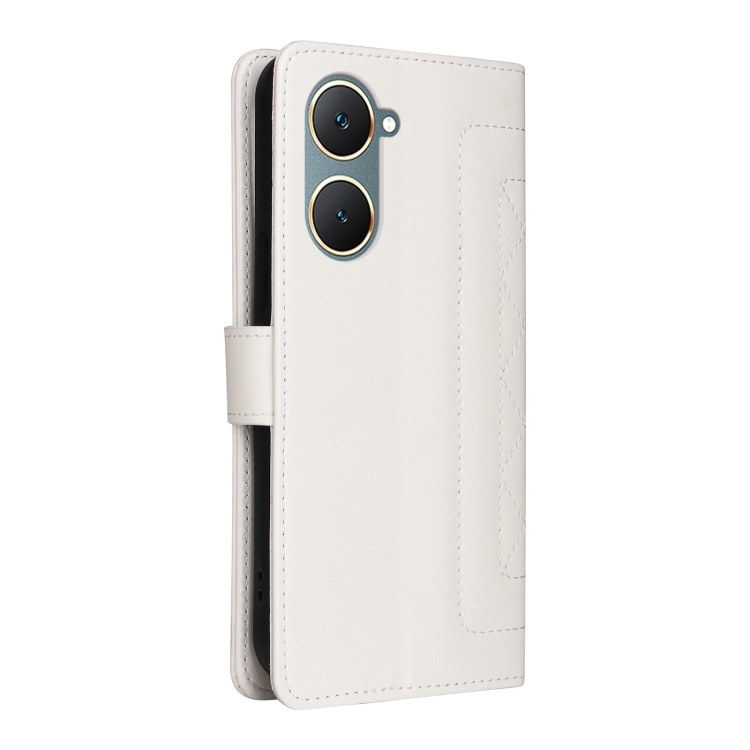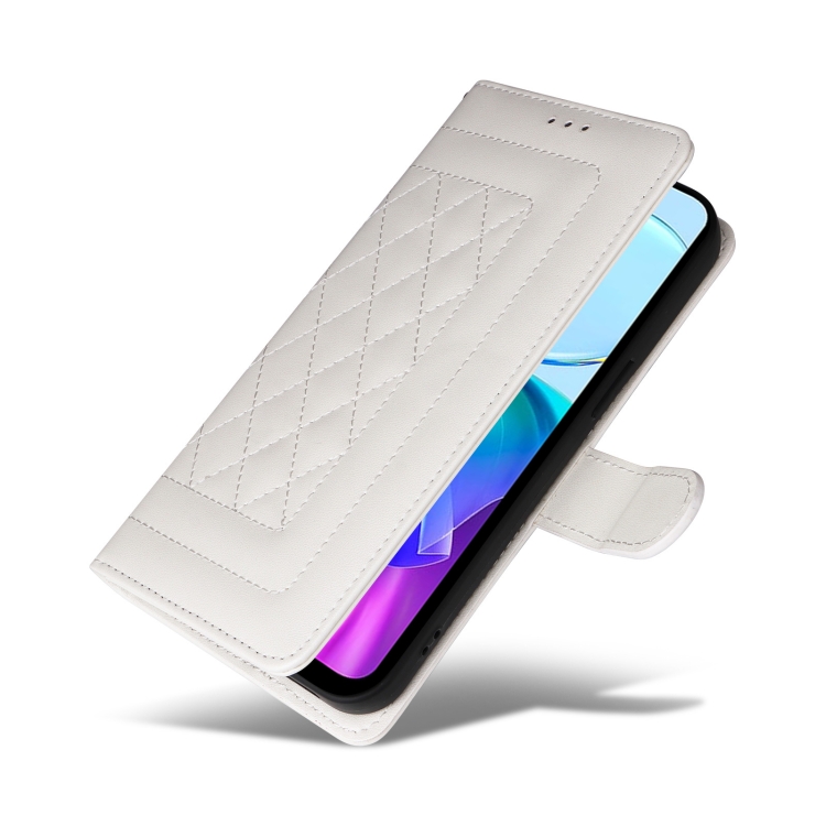 Para Vivo Y03 Diamond Lattice Funda de Cuero para Teléfono con Tapa (Blanco)