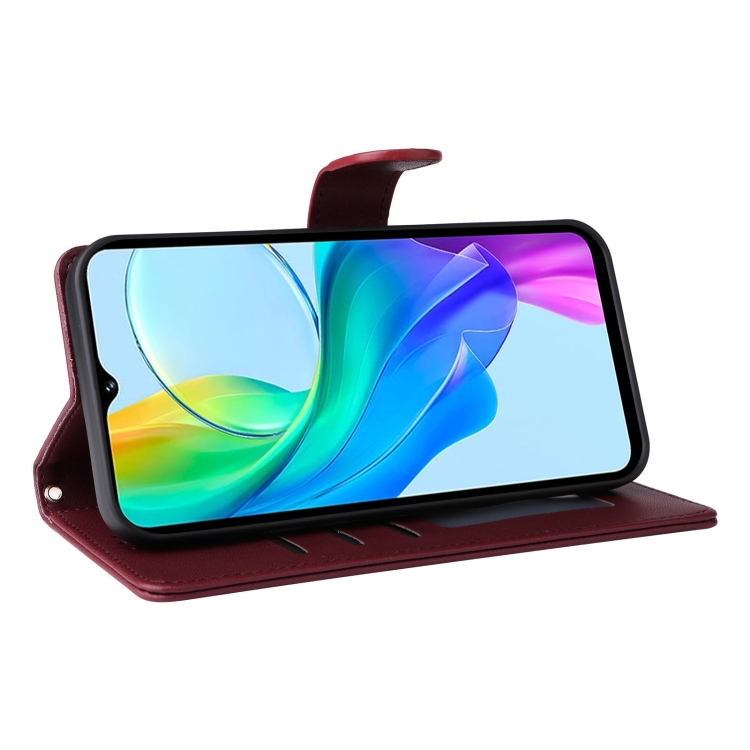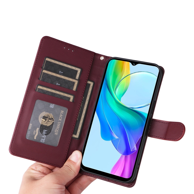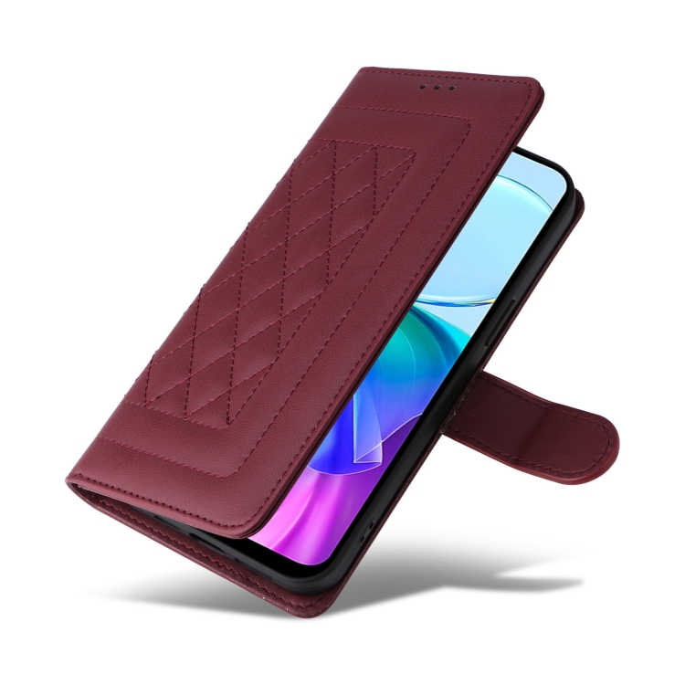 Para Vivo Y03 Diamond Lattice Funda de Cuero para Teléfono con Tapa (Rojo Vino)