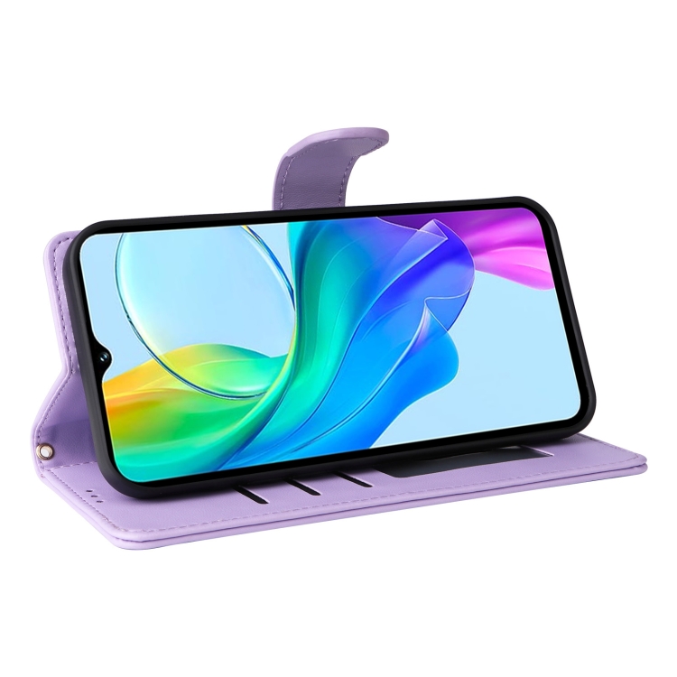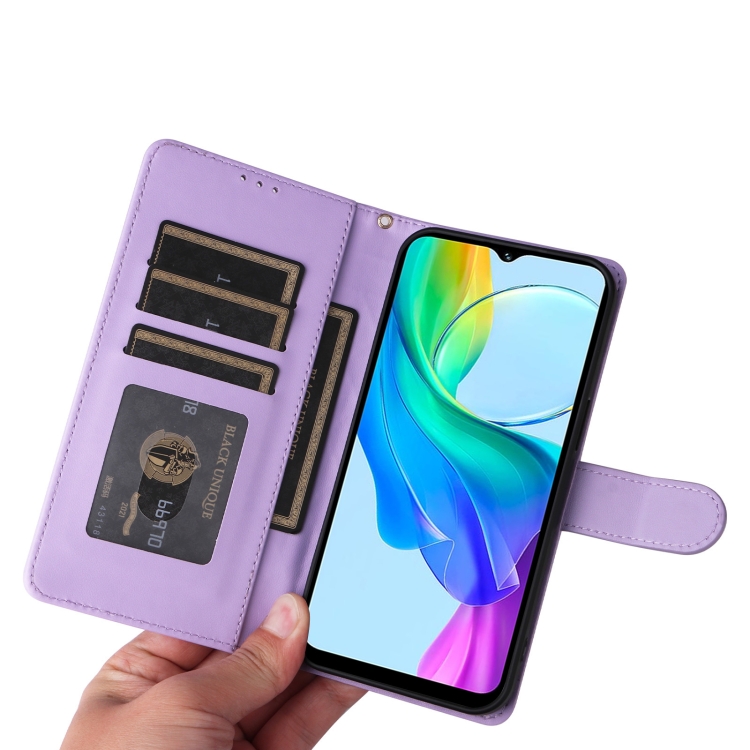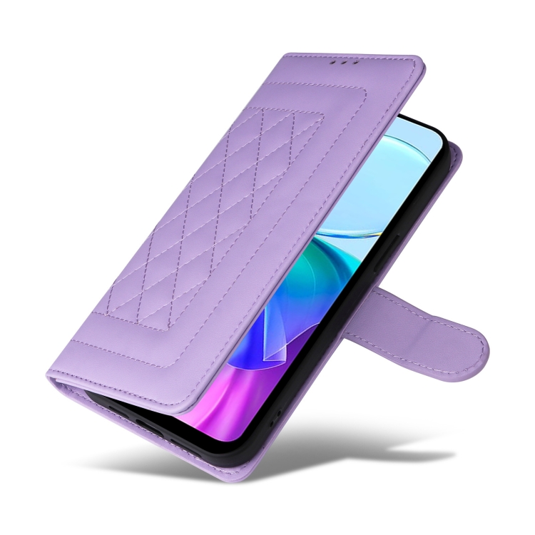 Para Vivo Y03 Diamond Lattice Funda para Teléfono con Tapa de Cuero (Púrpura Claro)