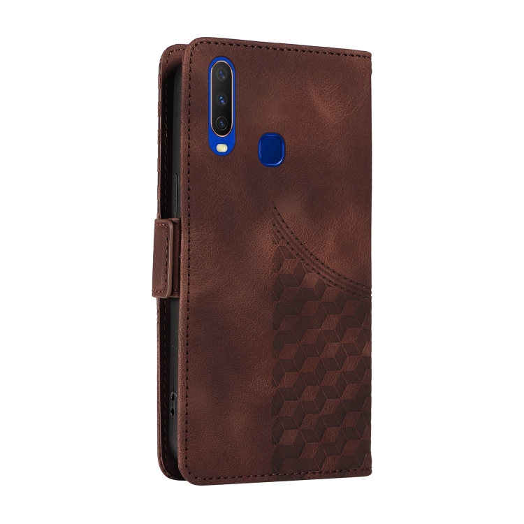 Para Vivo Y17 / Y15 / Y12 Funda para Teléfono de Cuero Estrellado con Rombos En Relieve (Marrón)