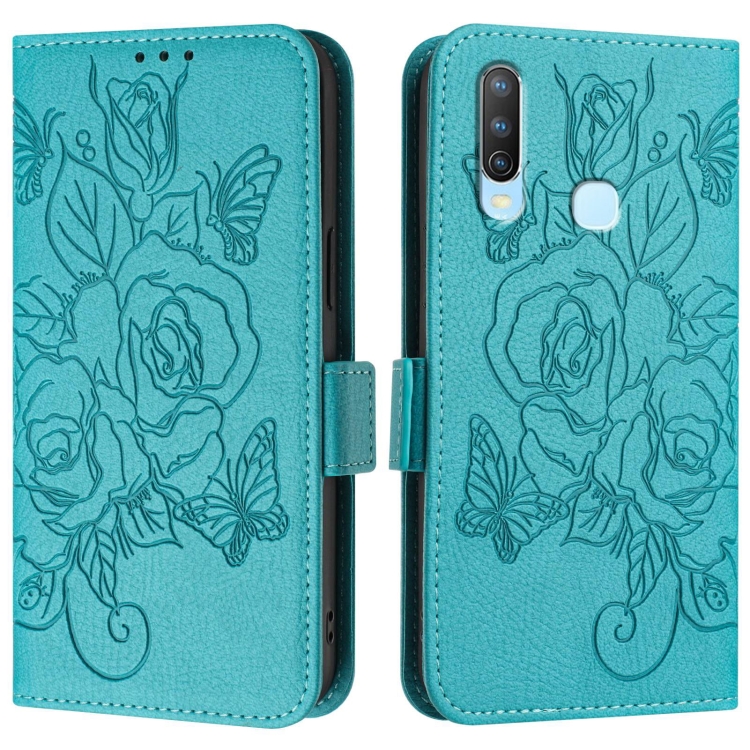 Para Vivo Y17 / Y15 / Y12 / Y11 Funda para Teléfono de Cuero Antirrobo Rfid con Rosa En Relieve (Azul Claro)