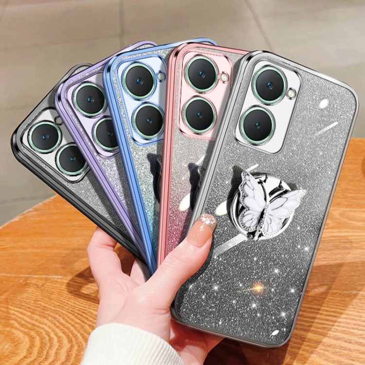 Para Vivo Y18 Funda para Teléfono de TPU con Soporte de Mariposa con Brillo Degradado Plateado (Azul Sierra)