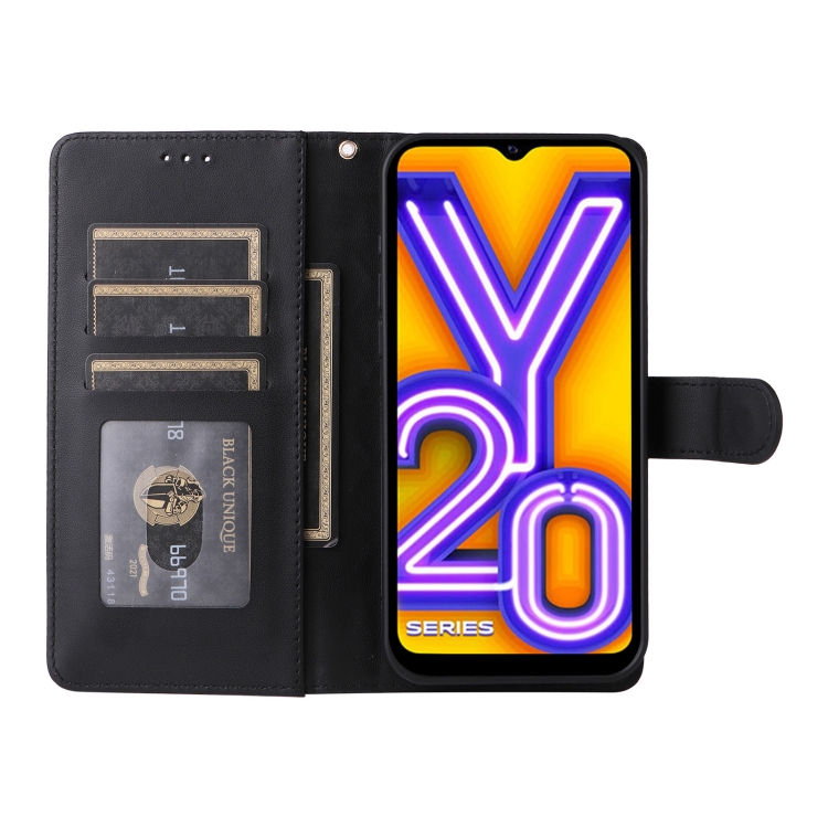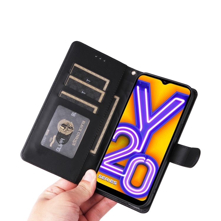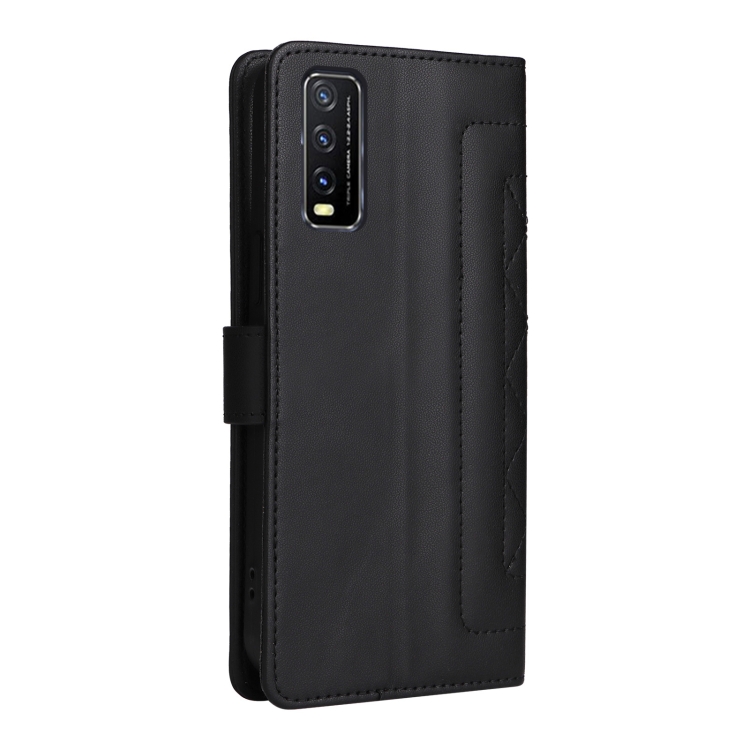 Para Vivo Y20 / Y20I Funda para Teléfono con Tapa de Cuero Diamond Lattice (Negro)