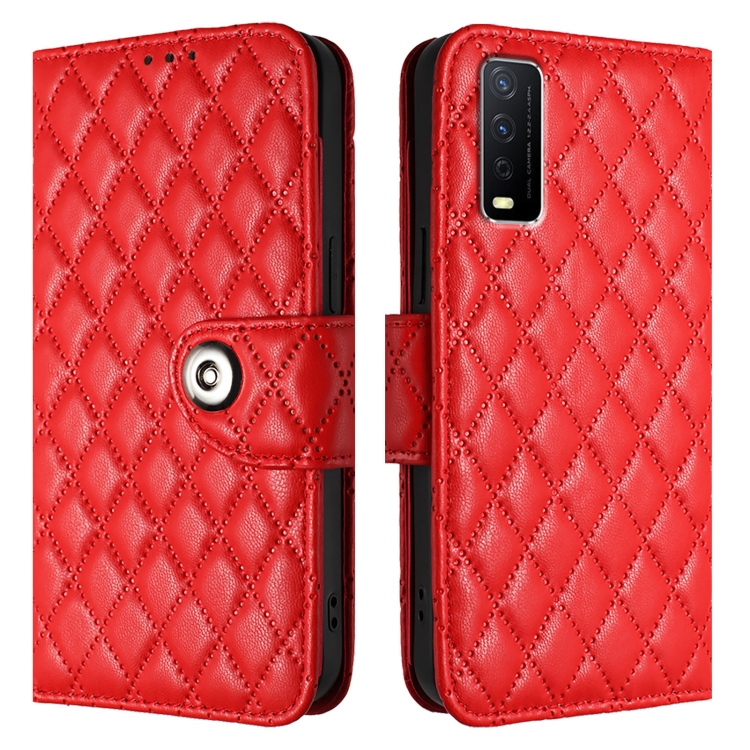 Para Vivo Y20 / Y20I / Y20S / Y20A Funda para Teléfono de Cuero con Tapa con Textura Rómbica y Cordón (Rojo)