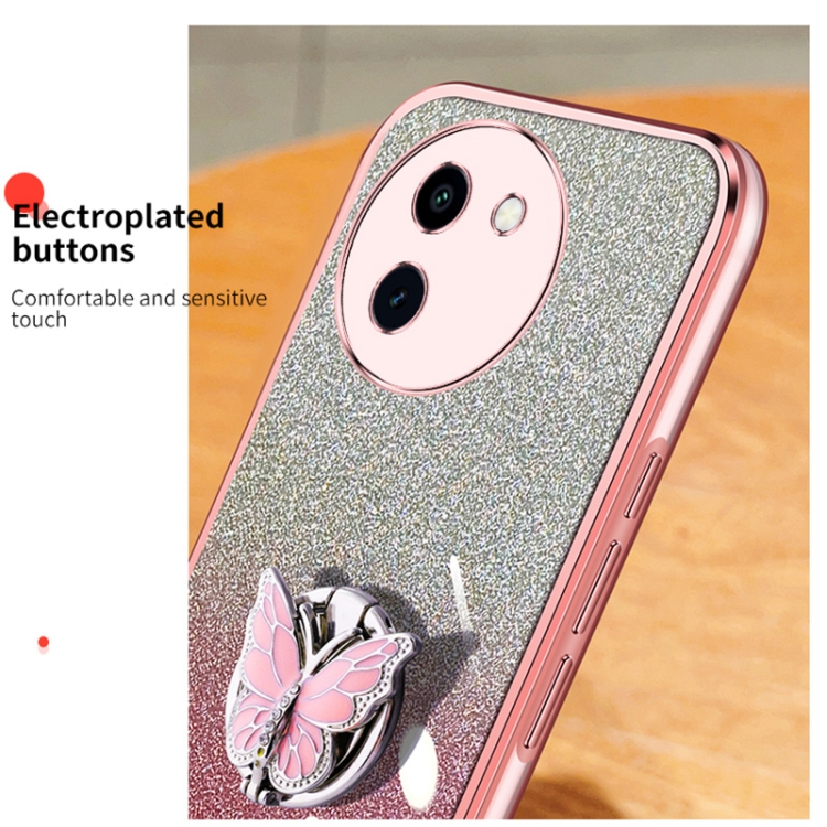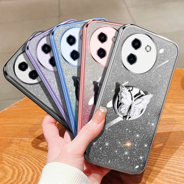 Para Vivo Y200I / T3X 5G Estuche para Teléfono de TPU con Soporte de Mariposa con Brillo Degradado Plateado (Plata)