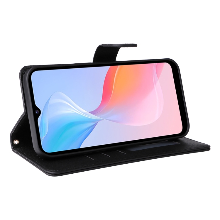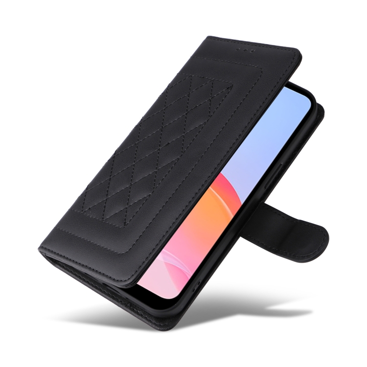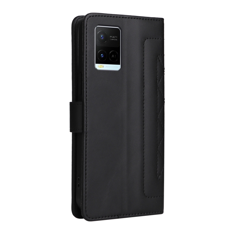 Para Vivo Y21 / Y33S Funda para Teléfono con Tapa de Cuero Diamond Lattice (Negro)