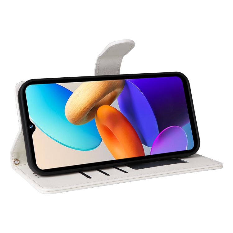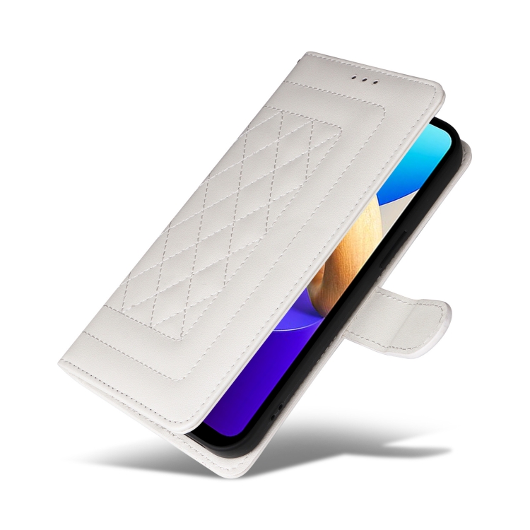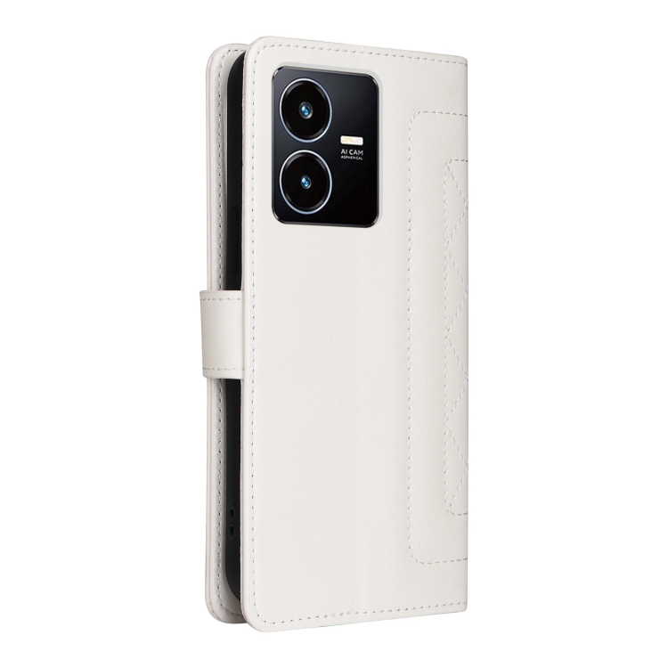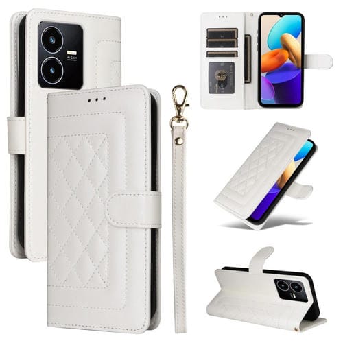 Para Vivo Y22S / Y35 Funda para Teléfono con Tapa de Cuero Diamond Lattice (Blanco)