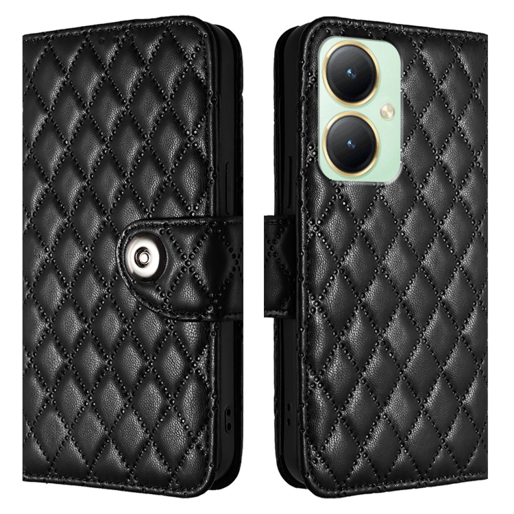 Para Vivo Y27 4G Global Rhombic Texture Funda de Cuero con Tapa para Teléfono con Cordón (Negro)