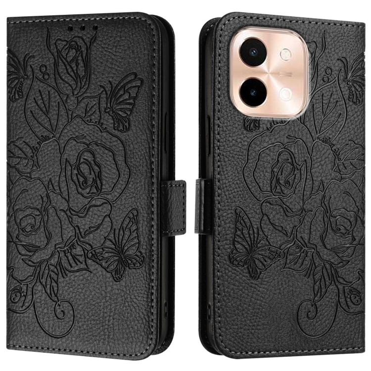 Para Vivo Y28 4G Funda de Teléfono de Cuero Antirrobo Rfid con Relieve Rosa (Negro)