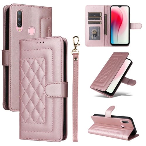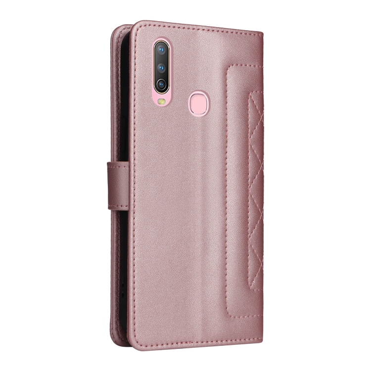 Para Vivo Y3 / Y17 Funda para Teléfono con Tapa de Cuero Diamond Lattice (Oro Rosa)