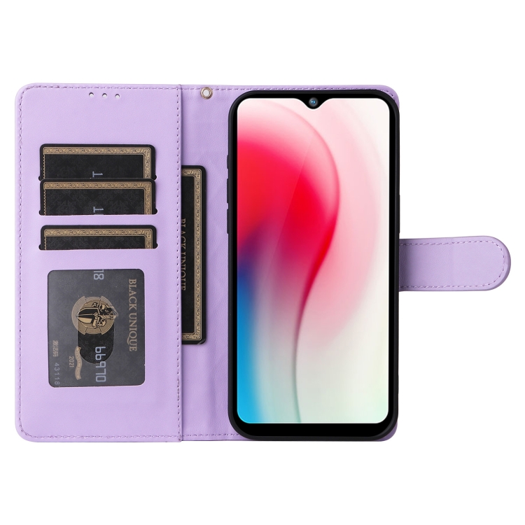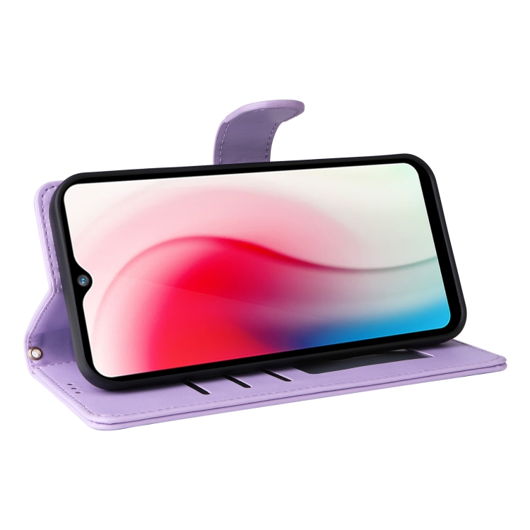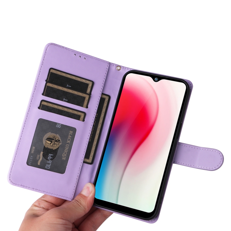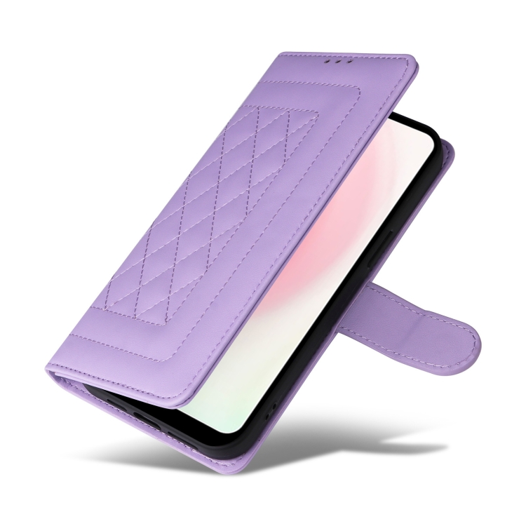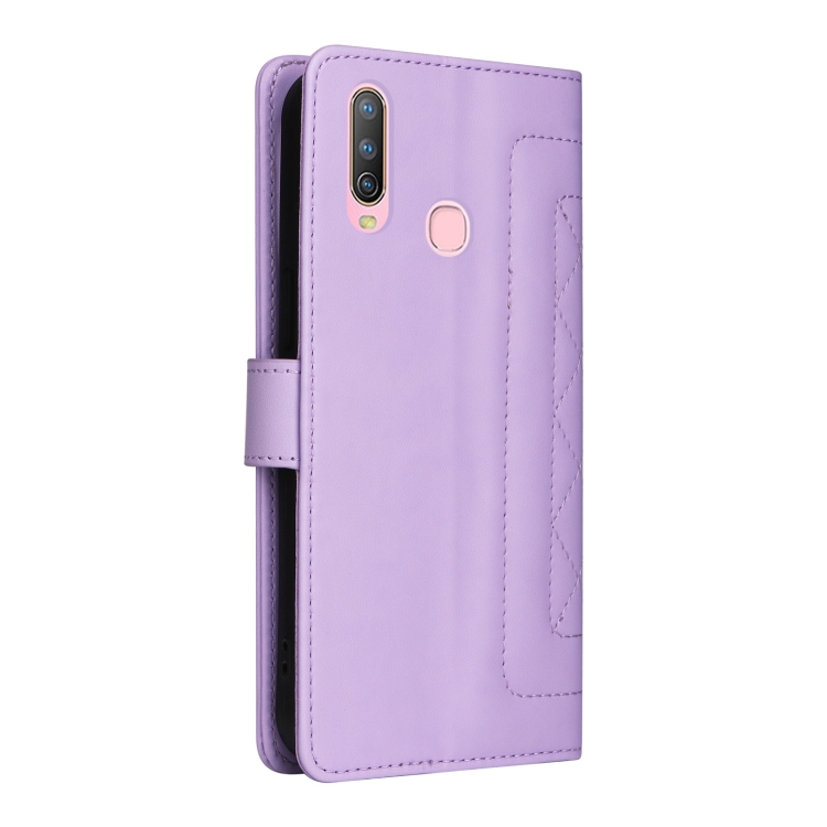 Para Vivo Y3 / Y17 Funda para Teléfono con Tapa de Cuero Diamond Lattice (Púrpura Claro)