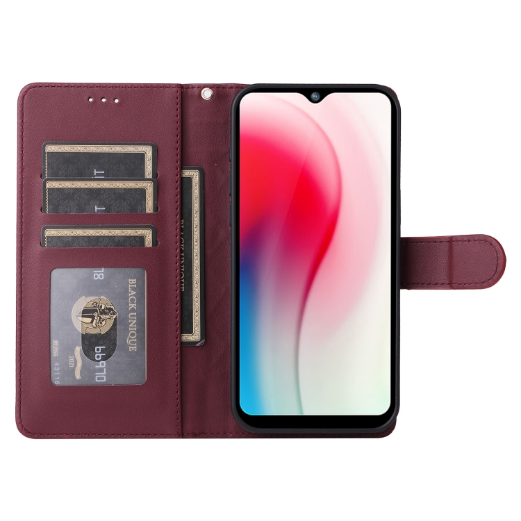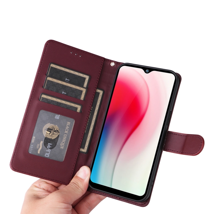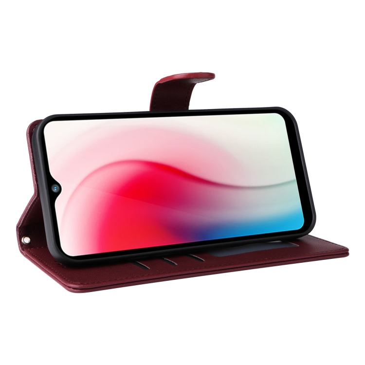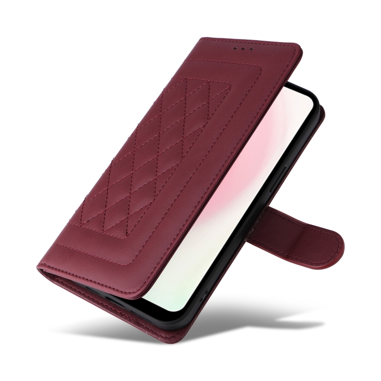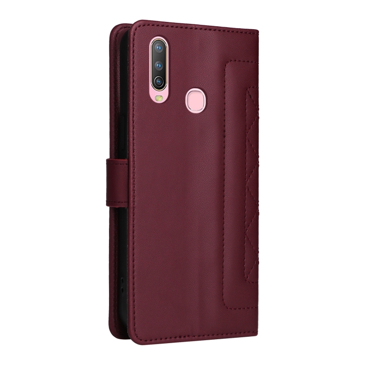 Para Vivo Y3 / Y17 Funda para Teléfono con Tapa de Cuero Diamond Lattice (Rojo Vino)