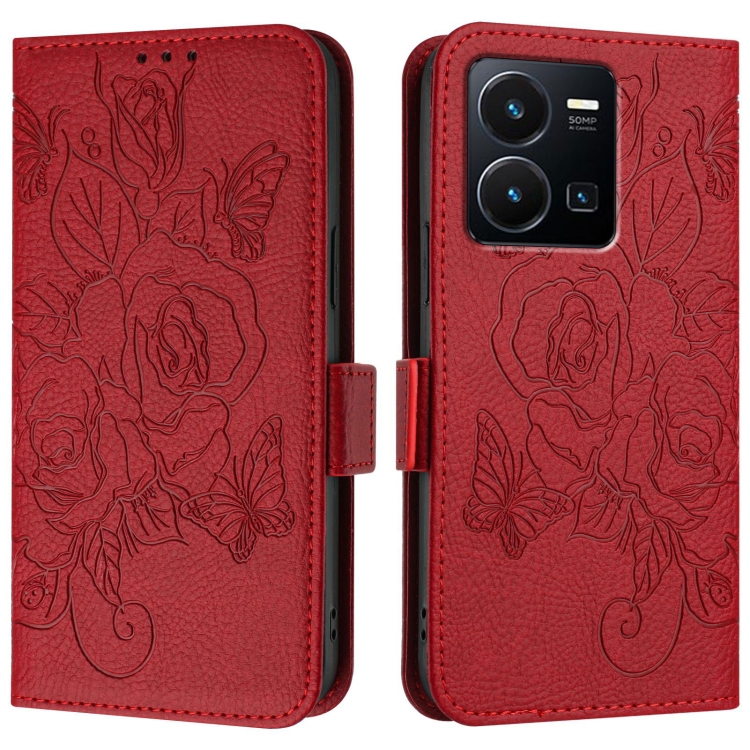 Para Vivo Y35 4G / Y22 4G / Y22S 4G Funda para Teléfono de Cuero Antirrobo Rfid con Relieve Global (Rojo)