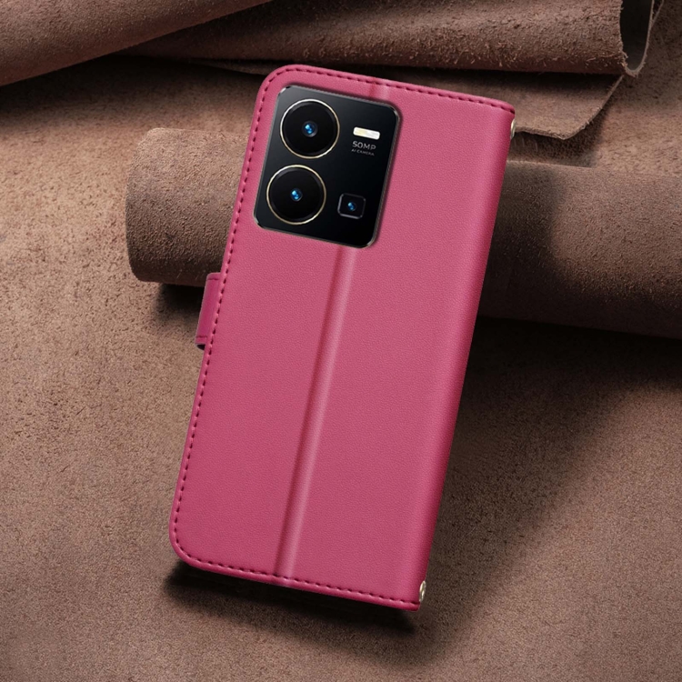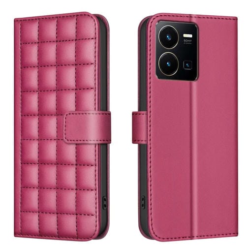 Para Vivo Y35 4G / Y22S Funda de Cuero para Teléfono con Textura Cuadrada (Rojo)