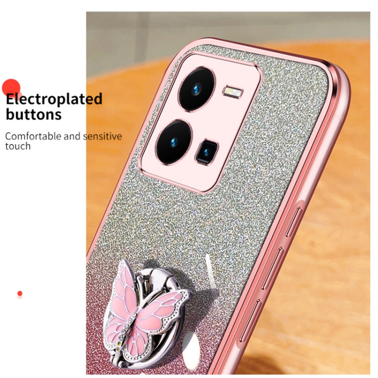 Para Vivo Y35 Global 2022 Estuche para Teléfono de TPU con Soporte de Mariposa con Brillo Degradado Plateado (Púrpura)