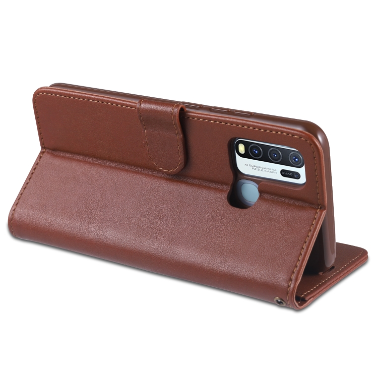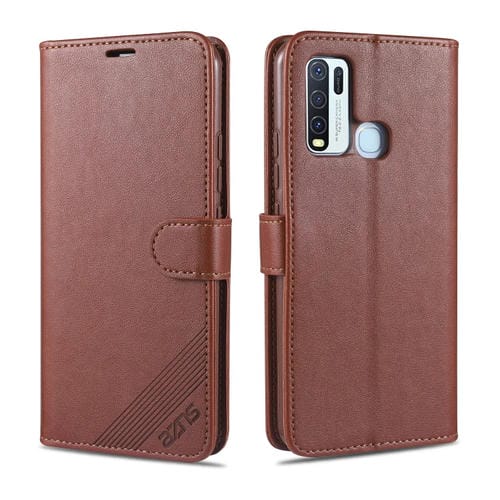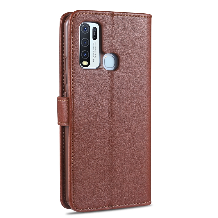 Para Vivo Y50 Azns Funda de Cuero con Tapa Horizontal con Textura de Piel de Oveja con Soporte, Ranuras para Tarjetas y Billetera (Marrón)