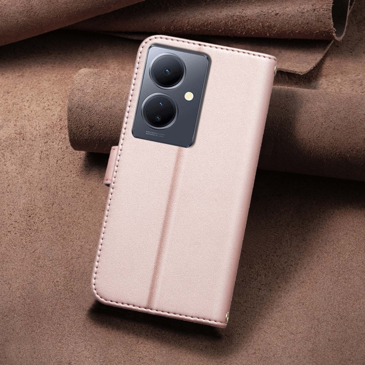 Para Vivo Y78 5G / Y36 Funda de Cuero con Textura Cuadrada (Oro Rosa)