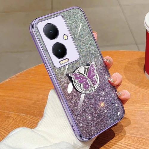 Para Vivo Y78 + Funda para Teléfono de TPU con Soporte de Mariposa con Brillo Degradado Plateado (Púrpura)