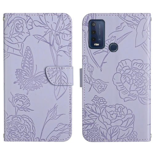Funda de Cuero En Relieve para Wiko Power U30 Siente la Piel de la Mariposa (Púrpura)