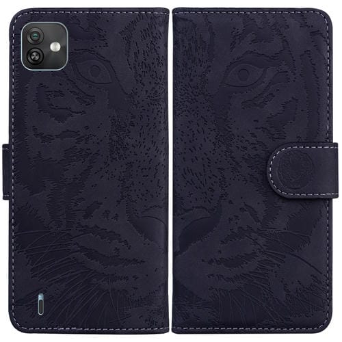 Funda de Cuero Flip para Wiko Y82 con Estampado de Tigre Horizontal (Negro)