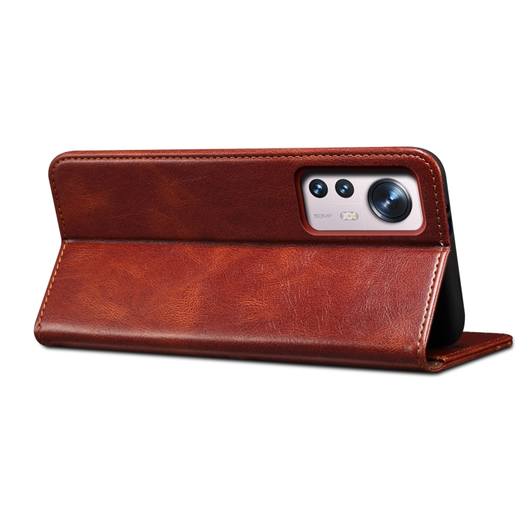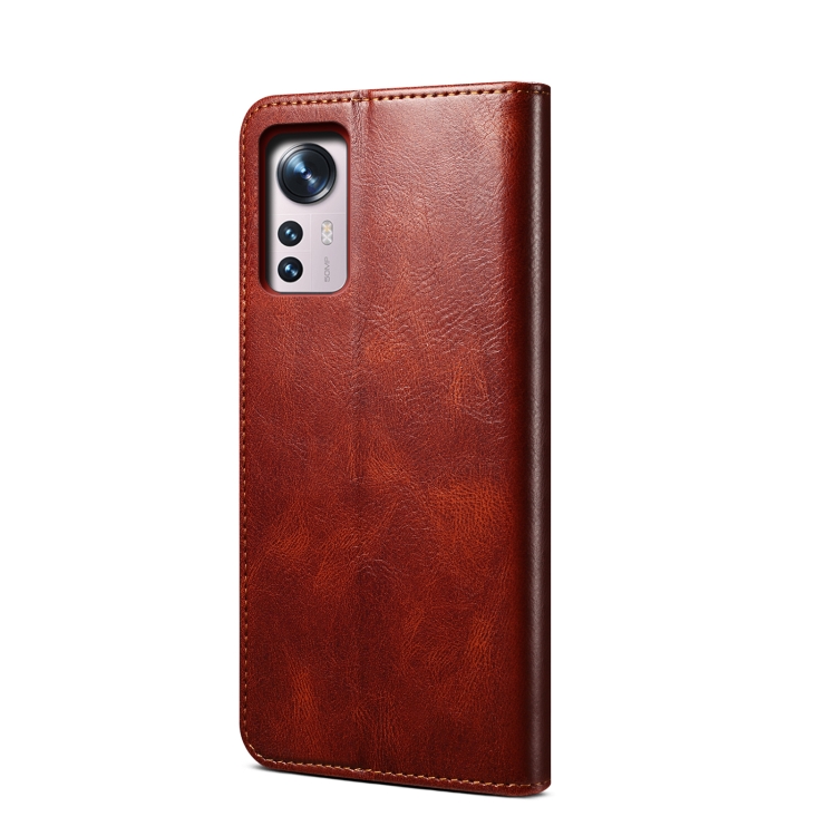 Para Xiaomi 12/12S Simple Wax Crazy Horse Texture Cuero Case (marrón)