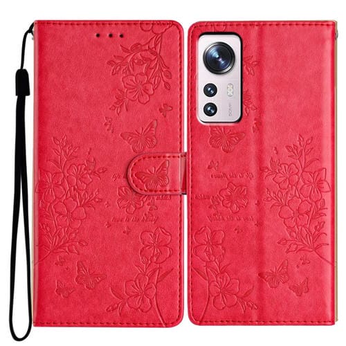 Para Xiaomi 12 Lite Funda de Cuero para Teléfono con Mariposas y Flores (Rojo)