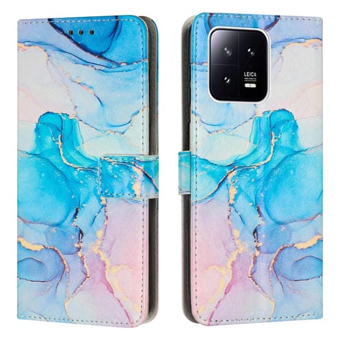 Para Xiaomi 13 Caja de Teléfono de Cuero con Patrón de Mármol Pintado (Rosa Verde)