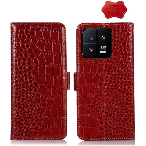 Para Xiaomi 13 Estuche para Teléfono de Cuero de Vaca con Capa Superior de Cocodrilo (Rojo)