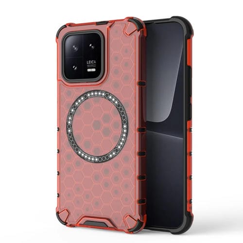 Para Xiaomi 13 Honeycomb Magnetic Ring Funda para Teléfono a Prueba de Golpes (Rojo)