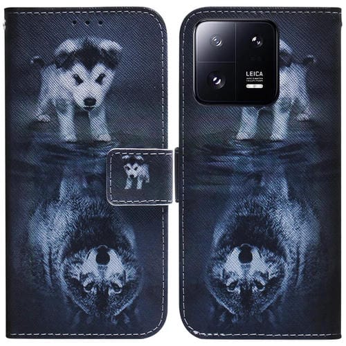 Para Xiaomi 13 Pro 5G Estuche de Teléfono de Cuero con Tapa de Dibujo Coloreado (Lobo y Perro)