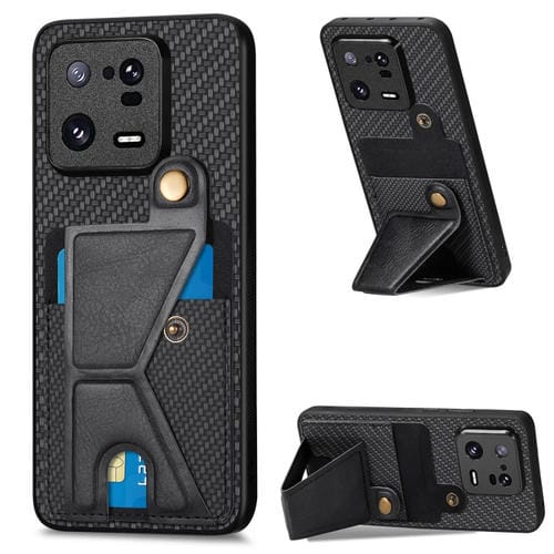 Para Xiaomi 13 Pro Carbon Fiber Wallet Flip Card Holder Phone Case (Negro)