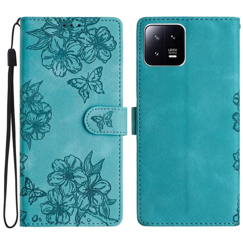 Para Xiaomi 13 Pro Cherry Blossom Butterfly Skin Feel Funda para Teléfono de Pu En Relieve (Verde)