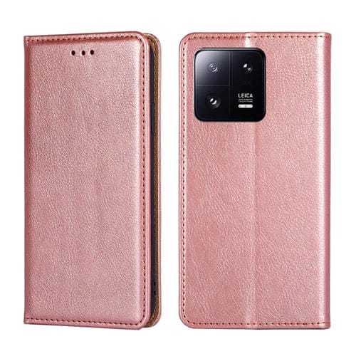 Para Xiaomi 13 Pro Estuche para Teléfono de Cuero Magnético de Color Sólido con Aceite Brillante (Oro Rosa)
