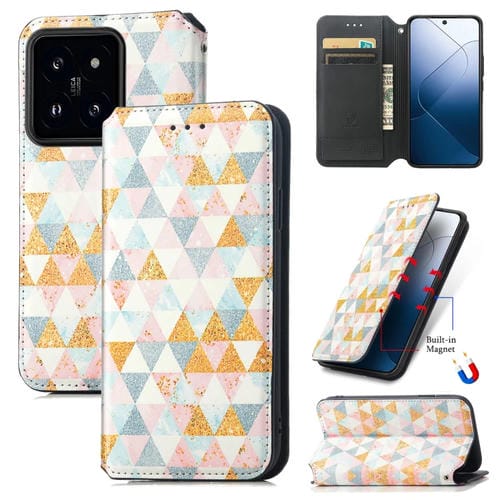 Para Xiaomi 14 Caseneo Funda De Cuero Magnética Colorida Para Teléfono (Rombo)