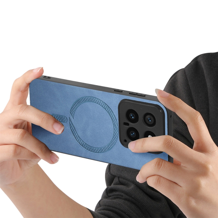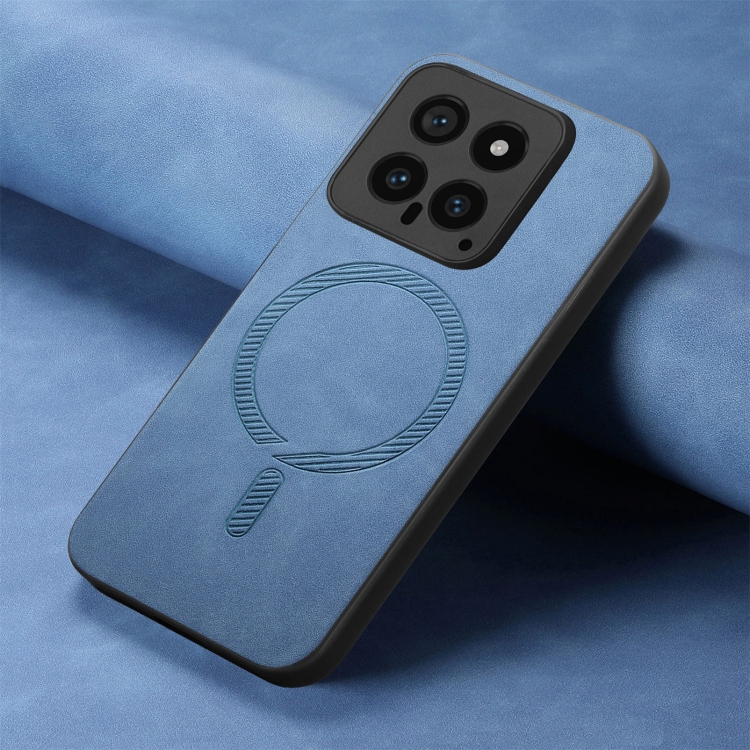 Para Xiaomi 14 Color Sólido Retro Magsafe Pu Funda Para Teléfono Con Contraportada (Azul)