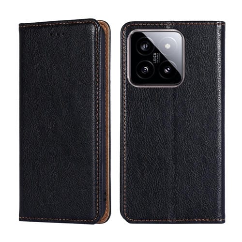 Para Xiaomi 14 Estuche De Teléfono De Cuero Magnético De Color Sólido Con Aceite Brillante (Negro)