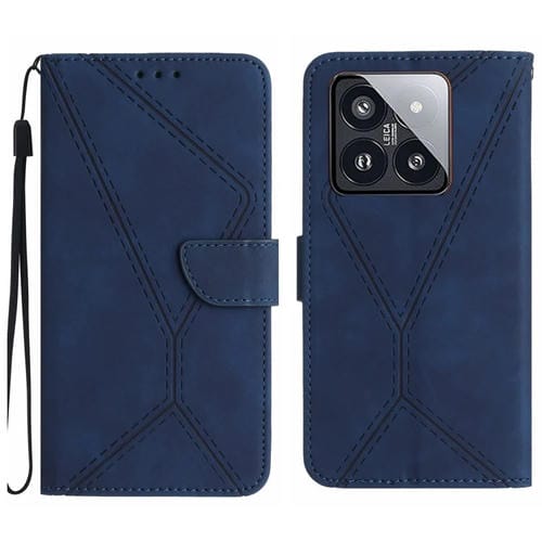 Para Xiaomi 14 Funda De Teléfono De Cuero Con Costuras En Relieve (Azul)