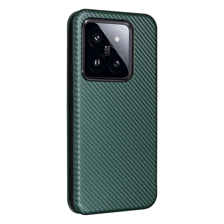 Para Xiaomi 14 Funda De Teléfono De Cuero Con Tapa Con Textura De Fibra De Carbono (Verde)