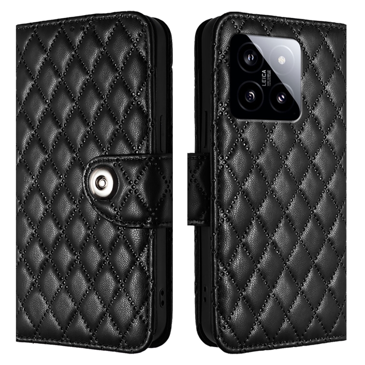 Para Xiaomi 14 Funda De Teléfono De Cuero Con Tapa Con Textura Rómbica Y Cordón (Negro)