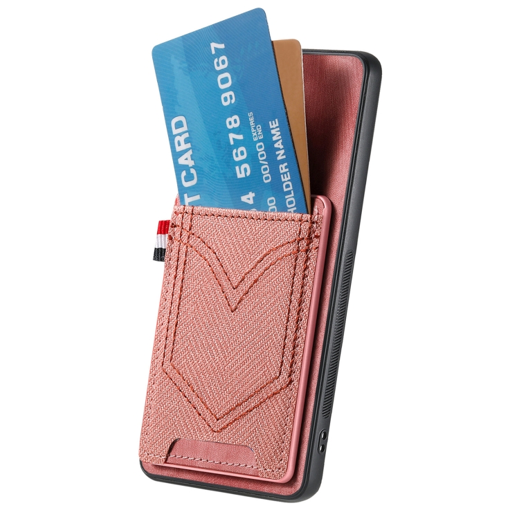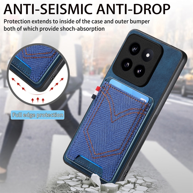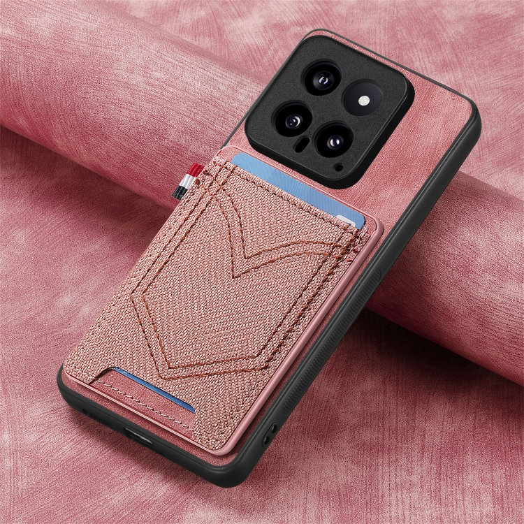 Para Xiaomi 14 Funda Para Teléfono Con Piel De Cuero Con Textura Vaquera Y Ranura Para Tarjeta (Rosa)