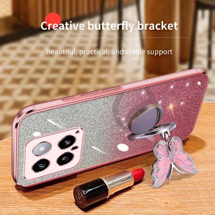 Para Xiaomi 14 Funda Para Teléfono Tpu Con Soporte De Mariposa Y Brillo Degradado Plateado (Rosa)