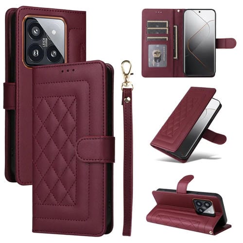Para Xiaomi 14 Pro 5G Diamond Lattice Funda De Cuero Para Teléfono Con Tapa (Rojo Vino)